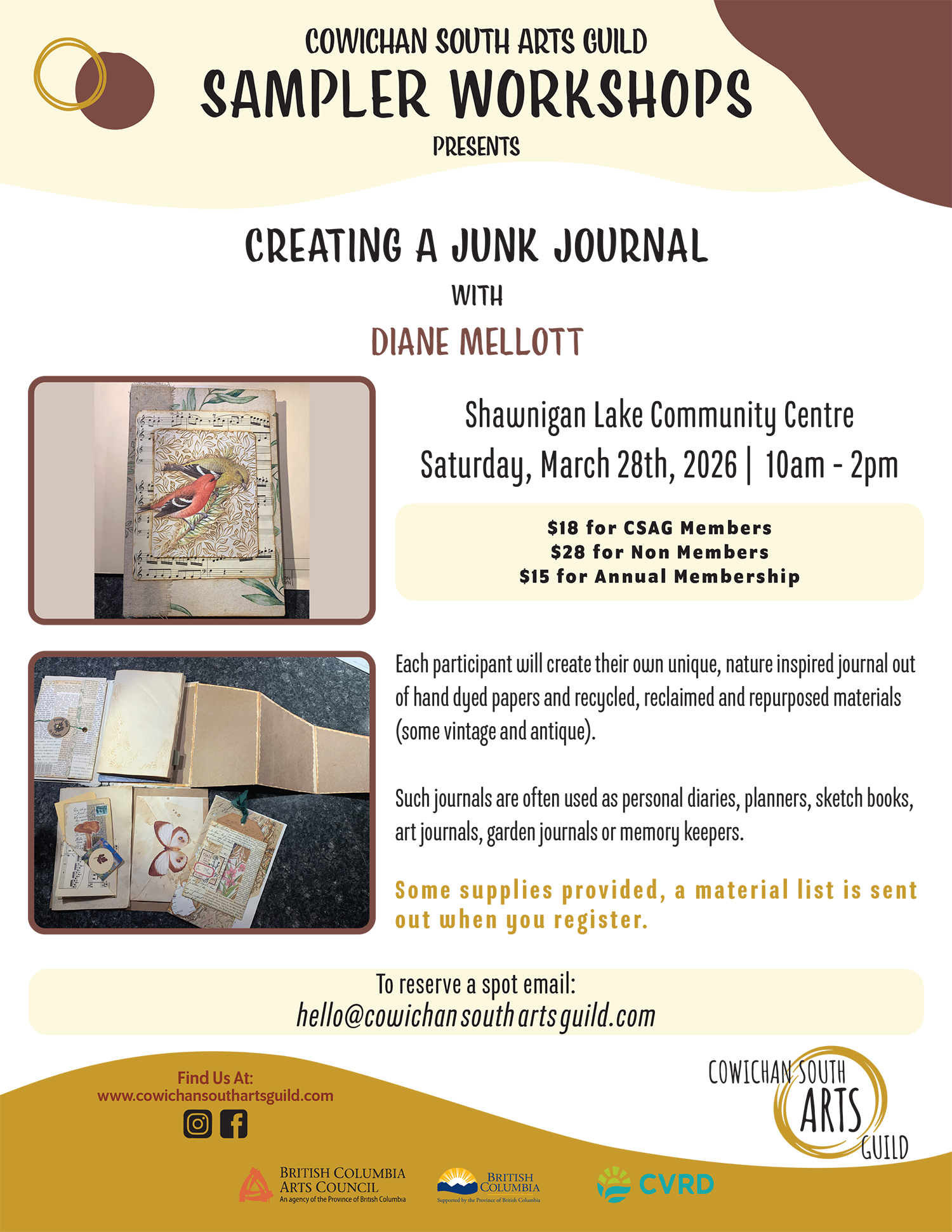 Part embridery, part abstract collage, slow stitching combines colours, layers and textures in a meditative process using reclaimed fabrics & adornments to create a unique textile collage art piece. Instructional workshop covers several basic starting stitches, all levels welcome.